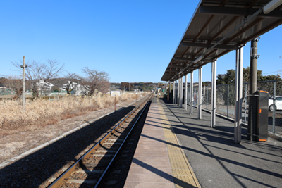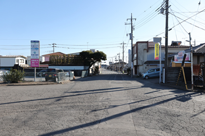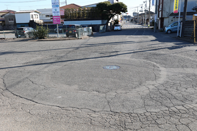 ![]() 駅前にうっすらと残る円形の跡。ロータリー交差点の跡でしょうか? |