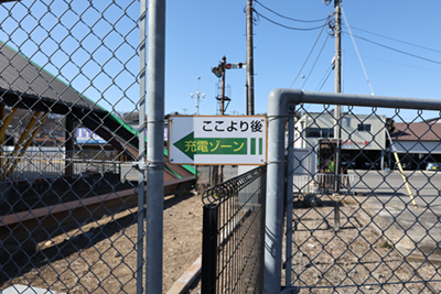 ![]() 終点部分から駅を撮影。充電施設が見えます。 |