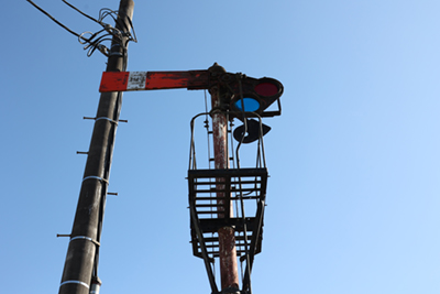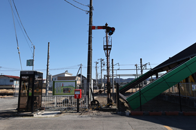 ![]() 駅舎横には、かつて使用されていた枕木式信号機の展示されています。 |