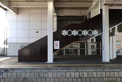 ![]() 階段には平安時代末期から戦国時代までこの地を治めた結城氏の右三つ巴(三頭右巴)紋をあしらっています。 |