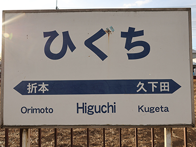 駅名由来 その他 住所は折本だが、樋口との境界付近にある。駅名は秩父鉄道樋口駅との混同を避けるため平仮名表記の「ひぐち」が正式名となっている。隣駅である久下田駅の駅名標には「Higuti」と記述されている。 ※参考、引用サイト:Wikipedia |