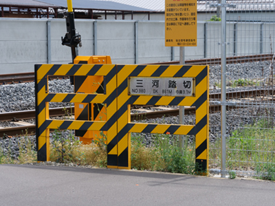 ![]() 新設区間の終点である「三河踏切」。 |