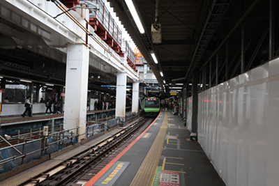 ![]() 当初は新宿駅と推定し調査しましたが、同じ場所は確認できず。動線の流れからおそらく渋谷駅構内ホームと思われ、後日調査します。 その後の調査の結果、渋谷駅1・2番ホーム北側と推測されました。近年の渋谷駅改修工事で風景が変わっていますが、跨線橋などが見えます。 (2025年12月27日(土)撮影) |