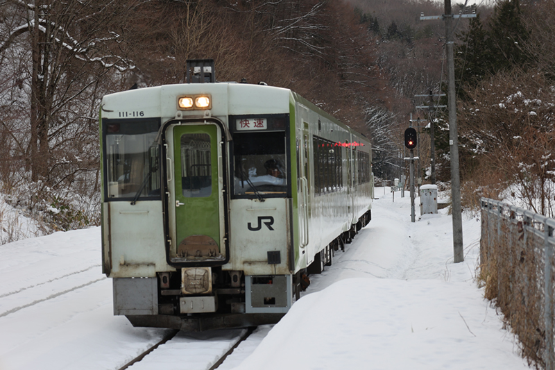 ![]() キハ110系(山田線 盛岡〜宮古) (2026年1月12日(月) 山岸駅〜上米内駅にて撮影) |