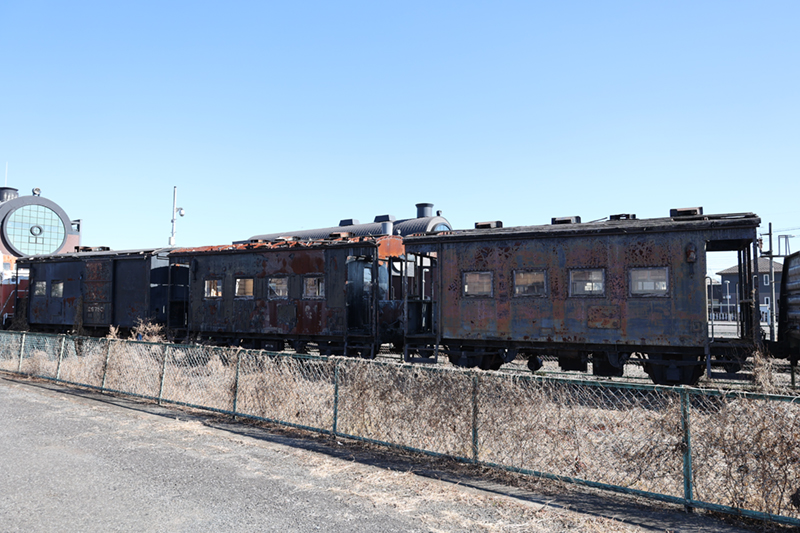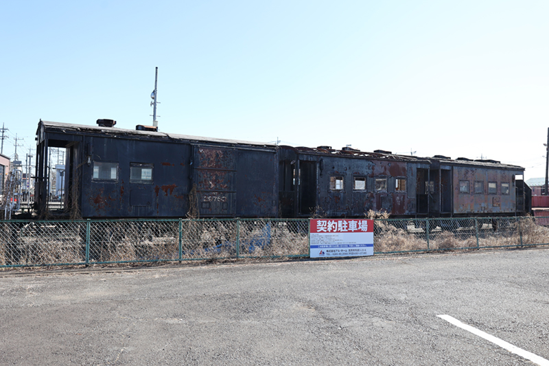 | ヨ14594・ヨ14720 真岡駅構内に静態保存されている2両の車両はヨ14594・ヨ14720とのことですが、塗装がはげているため、どちらなのかを区別できない。 |
